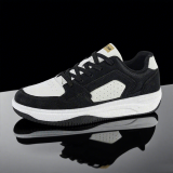 XY Men’s Casual Sports Shoes Pattern Leather with Low Cut Glossy Surface Pure Black Board Summer Running Shoes
